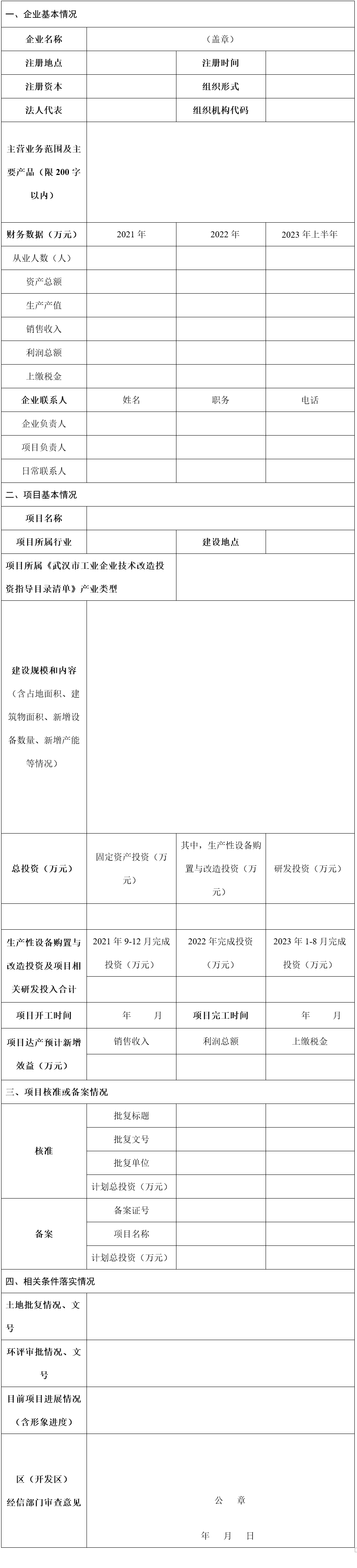 3.相关项目应符合武汉市工业投资和技术改造指导目录清单,纳入我市工业技改投资统计。